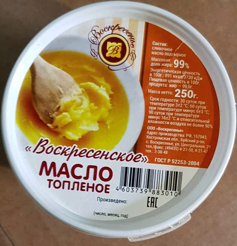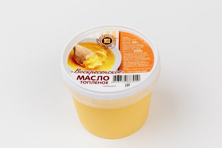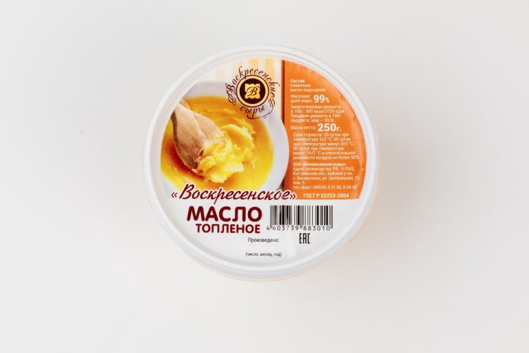 Главная страница / Магазин / Воскресенский Сыродел / Масло топленое Вес: 0,25 кг в коробке 30 шт 30 суток