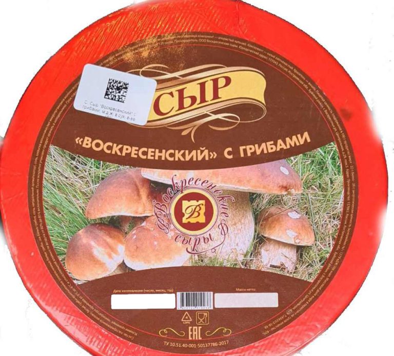 Главная страница / Магазин / Воскресенский Сыродел / Полутвердый сыр Воскресенский с белыми грибами Вес1.7-2кг Ж45-50% 90 суток