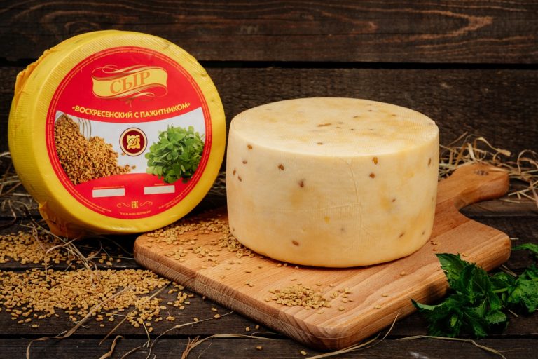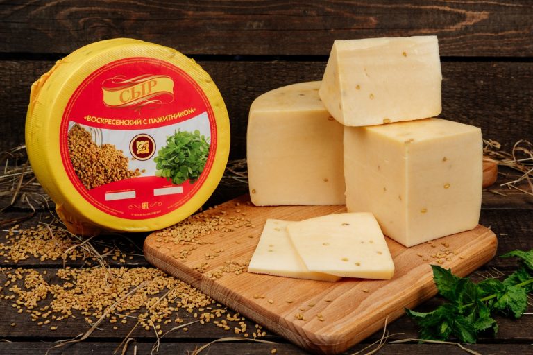 Сыр “Воскресенский с пажитником”- это новинка завода “Воскресенский сыродел”, которая появилась в декабре 2017 года, а уже в начале января 2018 года и в нашем интернет-магазине “Костромские сыры”. Уже полюбившийся фирменный сыр “Воскресенский” вышел с добавлением семян пажитника, растения, которое придает особый ореховый оттенок сырному вкусу и аромату. Семена пажитника обладают массой полезных свойств-от улучшения пищеварения до нормализации холестерина в организме и укрепления сердечно-сосудистой системы. Помимо положительного воздействия на организм пажитник придает сыру восхитительный вкус. Сыр “Воскресенский с пажитником” можно употреблять в пищу и как самостоятельное блюда, и как составной компонент рецептов для приготовления мяса, салатов и т.д. Спешите пробовать, и вы не останетесь разочарованными!